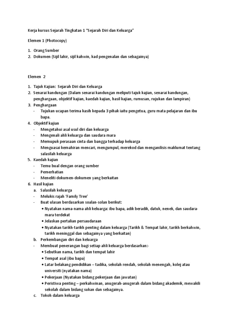 Aug 18 2017 contoh proposal kerja kursus sejarah. SEJARAH DIRI DAN KELUARGA. Kerja Kursus Sejarah Tingkatan 1 Pdf.